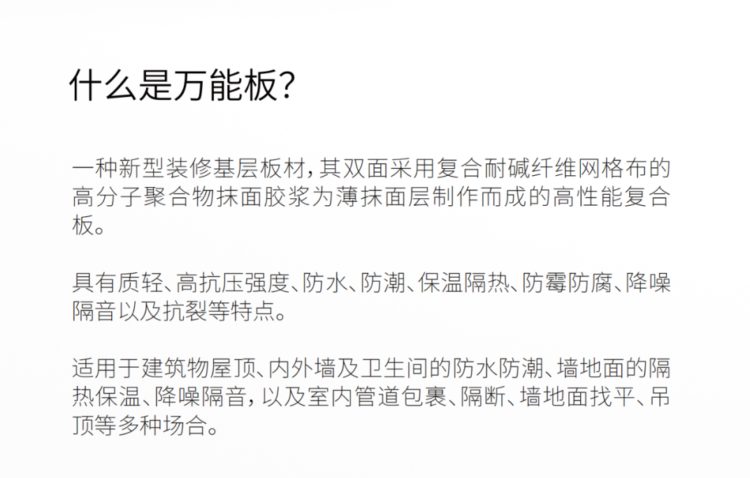 装房指万能板在地下室、厨卫中,部分企业称其为防水背衬板,起到防水防潮、防霉防腐、保温隔热、降噪隔音、抗裂等作用,装房指万能板在复杂工况下的应用技术,为工程质量提供了可靠保障。 装房指万能板适用性极强,能与多种材质墙面粘接,学员们学习万能板的批腻子工艺技巧,确保施工表面的平整和美观,通过实操掌握厚度控制、平整度标准,在施工全流程中精准把控每道工序。